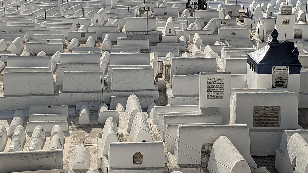 We continue with our exploration to the newer part of the city to Chaar Rafael. It is one of the last surviving synagogues and remnants of Tangier’s Jewish heritage. This Jewish-owned villa was built in 1919, and it was converted to a synagogue in 1954 when the owner, Raphaël Bendriahm, died. We then will continue to The Jewish Cemetery in Tangier referred to as the “old cemetery,” was in operation already in the 1910s. It has 1,000 graves, mostly white stones, some of which date back to the 16th century.